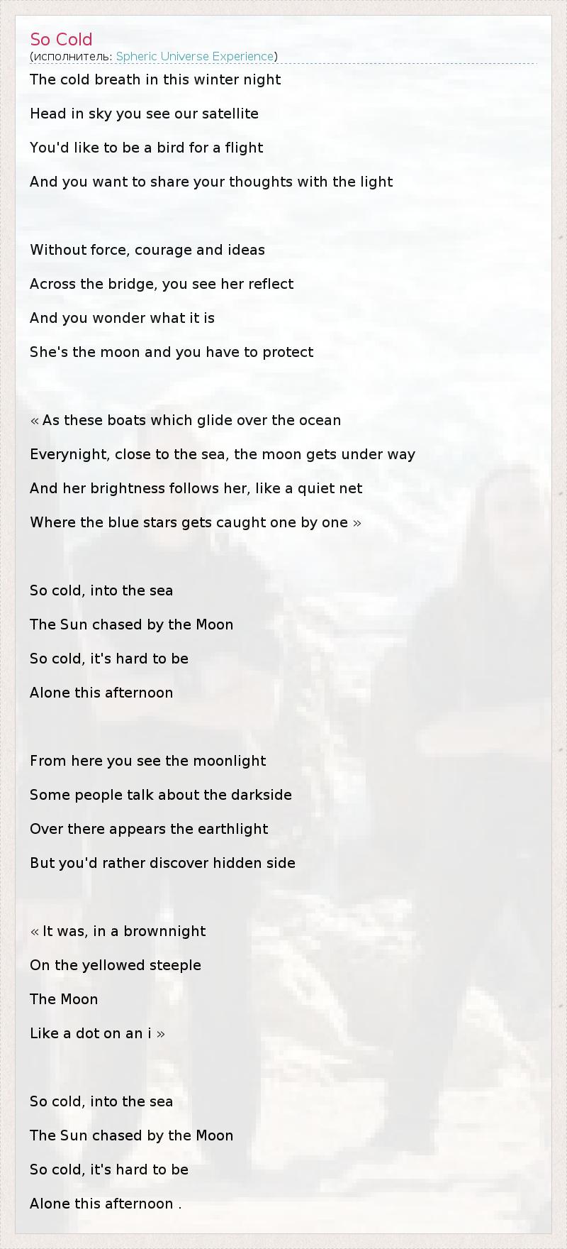 А как ты думаешь, о чем песня "So Cold" ?