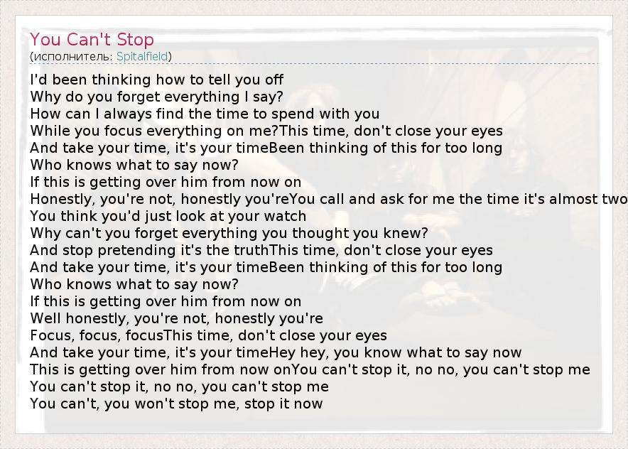 А как ты думаешь, о чем песня "You Can't Stop" ?