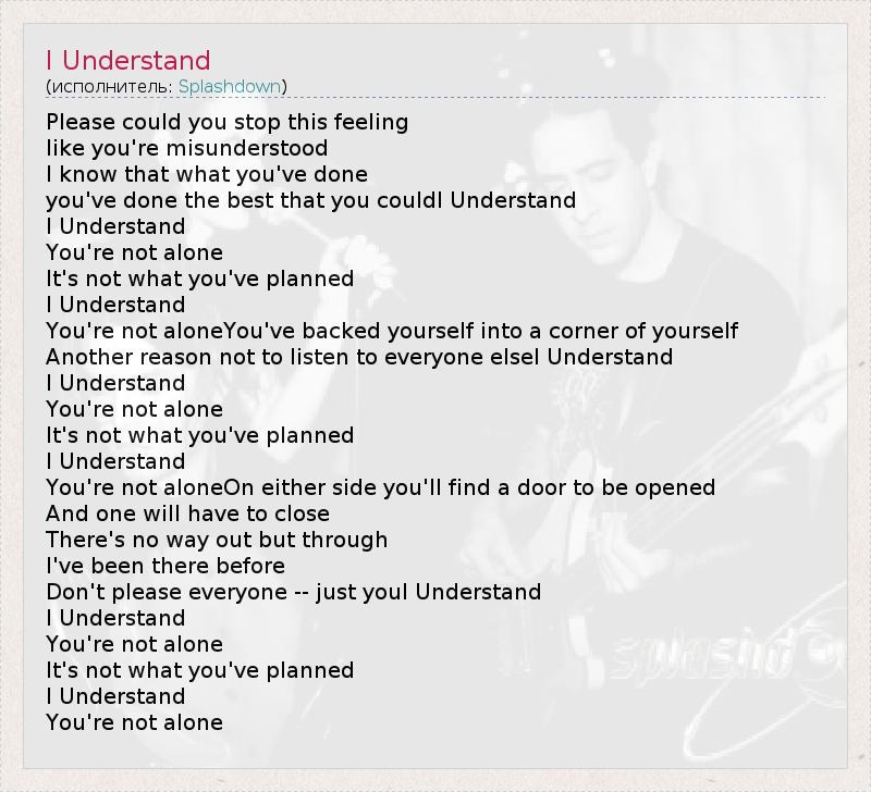 А как ты думаешь, о чем песня "I Understand" ?