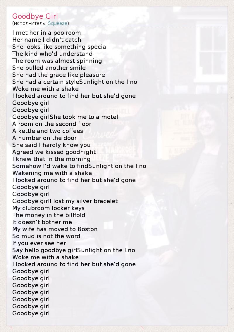 А как ты думаешь, о чем песня "Goodbye Girl" ?
