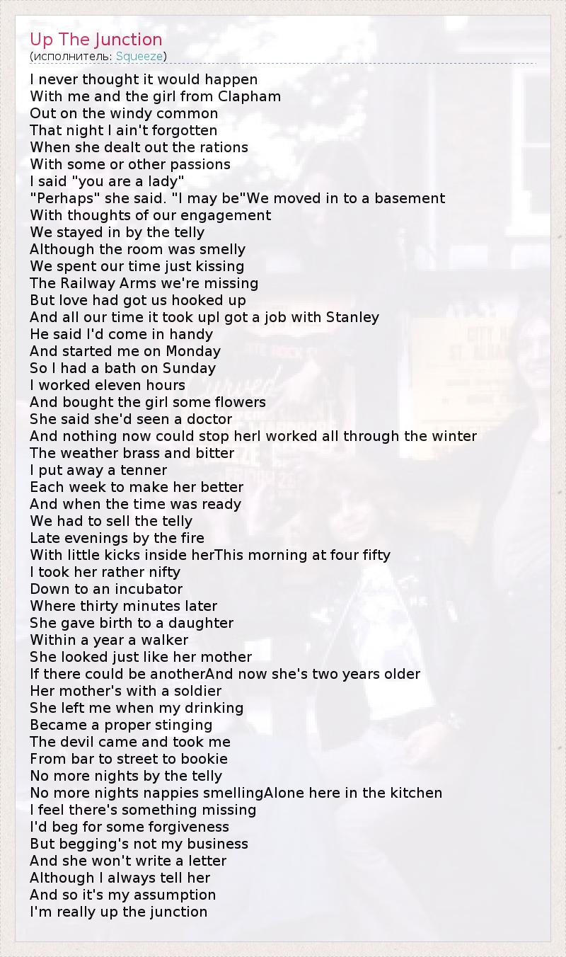 А как ты думаешь, о чем песня "Up The Junction" ?