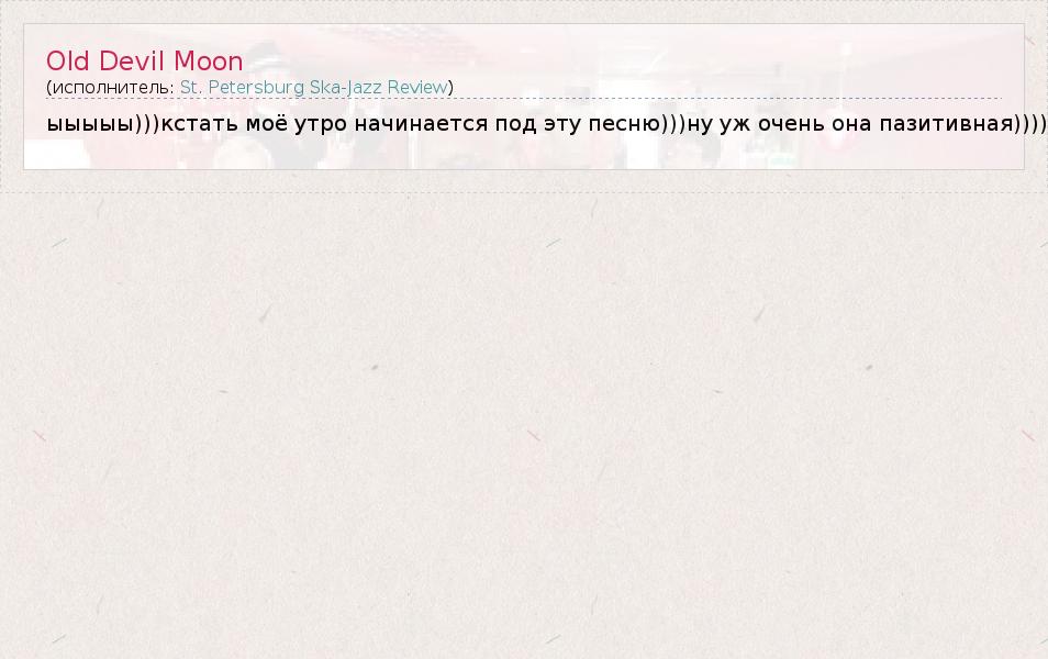 ыыыыы)))кстать моё утро начинается под эту песню)))ну уж очень она пазитивная))))
