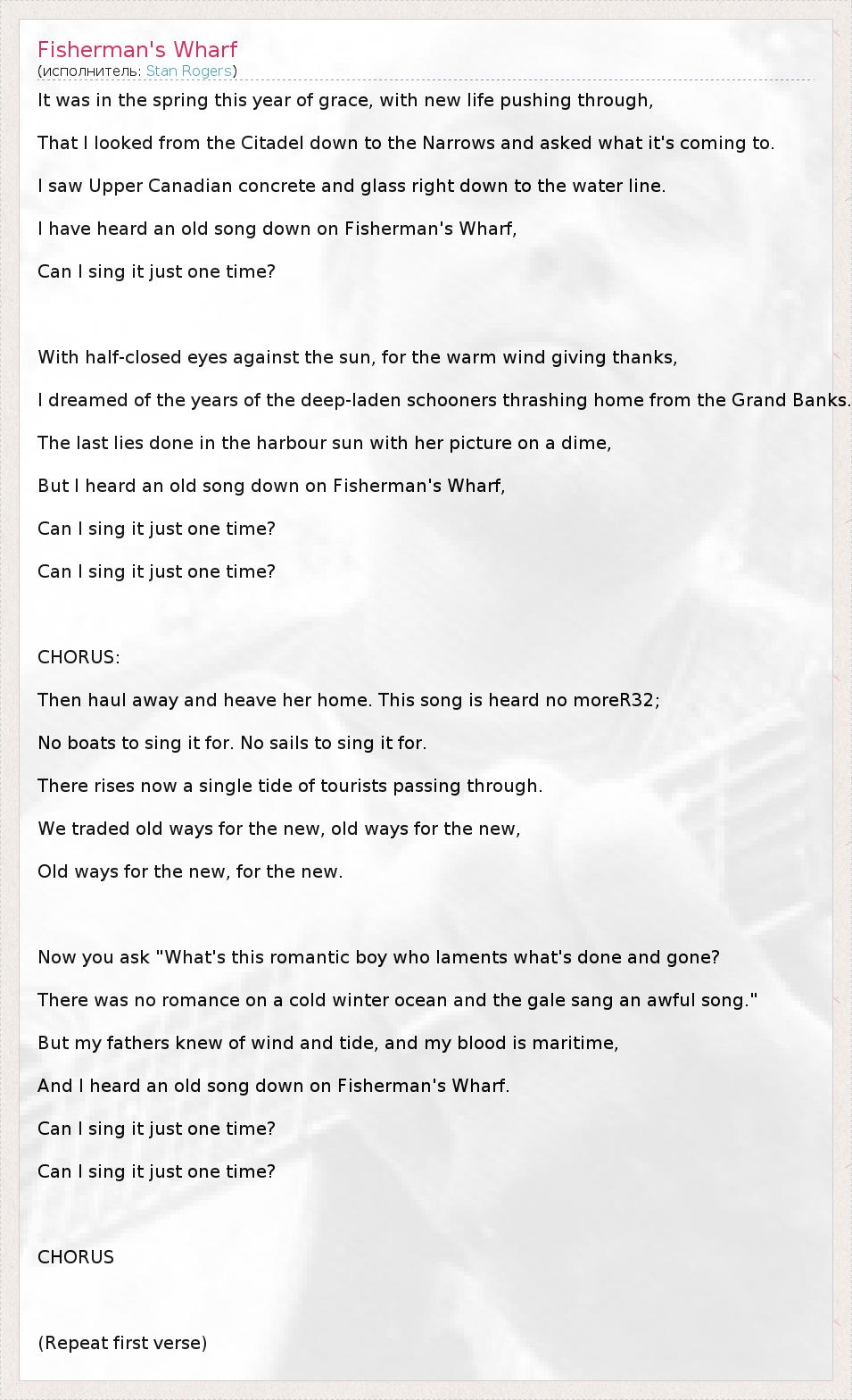 А как ты думаешь, о чем песня "Fisherman's Wharf" ?