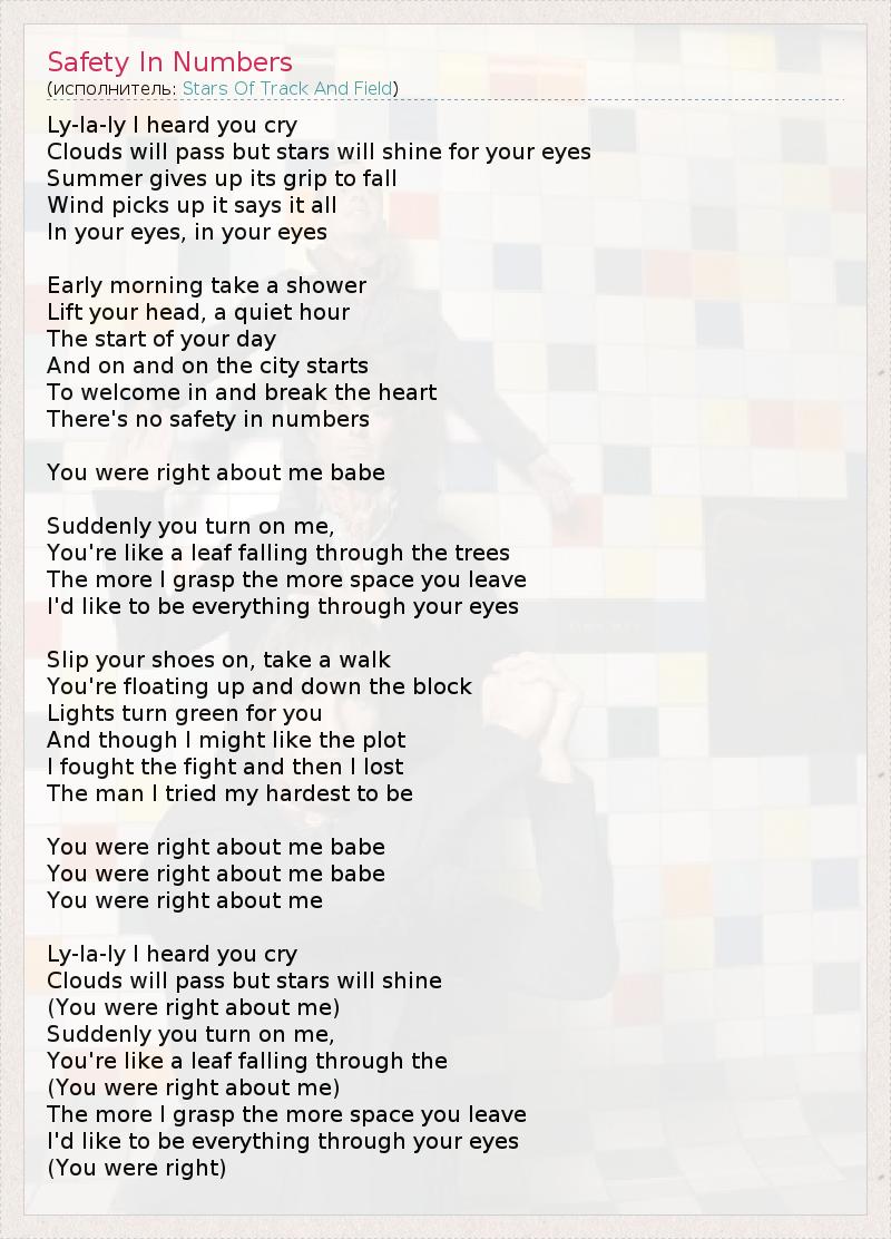 А как ты думаешь, о чем песня "Safety In Numbers" ?
