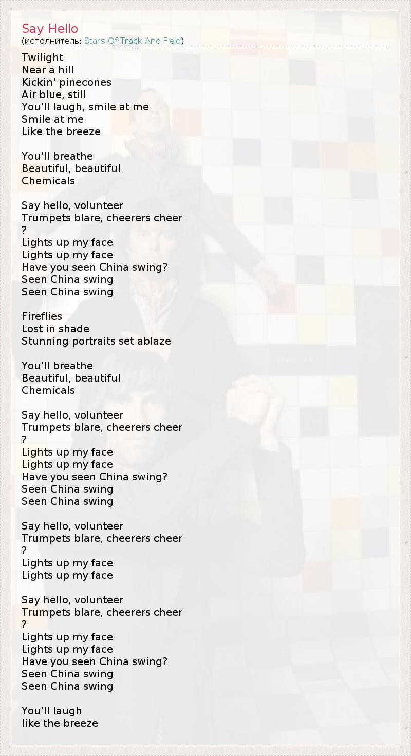 Это интересно:Stars of Track and Field – инди-поп трио из Портленда, штат Орегон. В настоящее время сотрудничает с лейблом Wind-Up Records. Название группы – ссылка на одноименную песню группы Belle and Sebastian из альбома If You're Feeling Sinister. В августе 2006 года группа выпустила альбом под названием Centuries Before Love and War для iTunes, а полноценная копия вышла в январе 2007 года.На телевизионном шоу "Rock and a Hard Place", организованном... продолжение