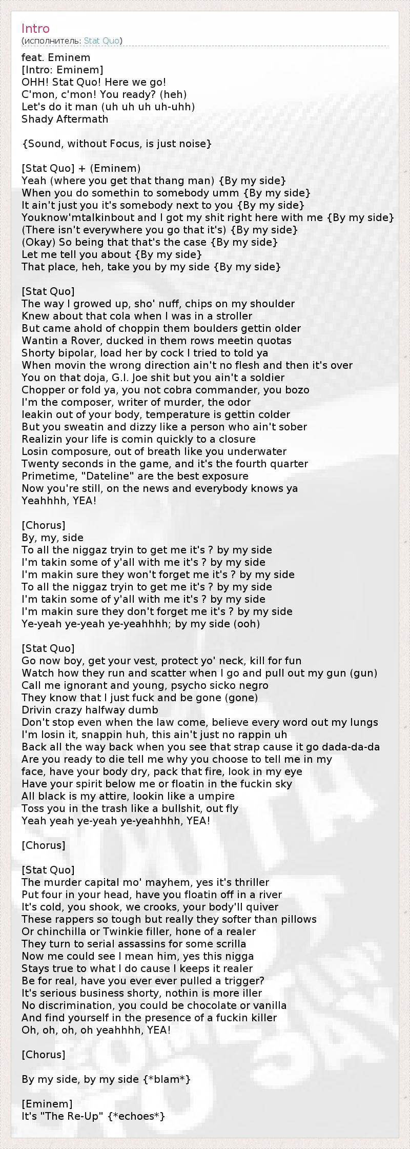 Это интересно:Подросток, не раз дававший повод называть себя маленьким ублюдком, тем не менее сумел закончить Флоридский университет.Вселенская фабрика по выращиванию рэп-звезд, известная так же как лейбл Aftermath/Interscope, продолжает осваивать новые территории. Покорив Мидуэст (Eminem), Восток (50 Cent & G-Unit) и Запад (Game), взгляд Доктора Дре устремился на непорабощенную территорию южных штатов, где издавна... продолжение