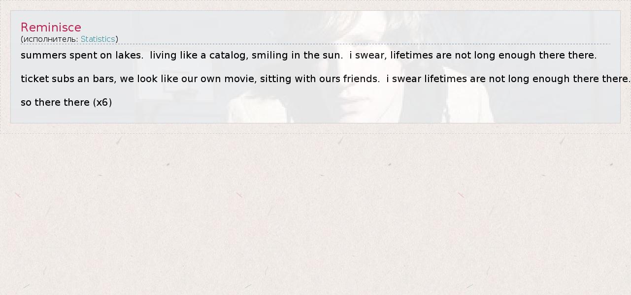 Это интересно:Statistics - рок-группа из Омаха, Небраска. Сформирована в 2003 году Denver'ом Dalley.