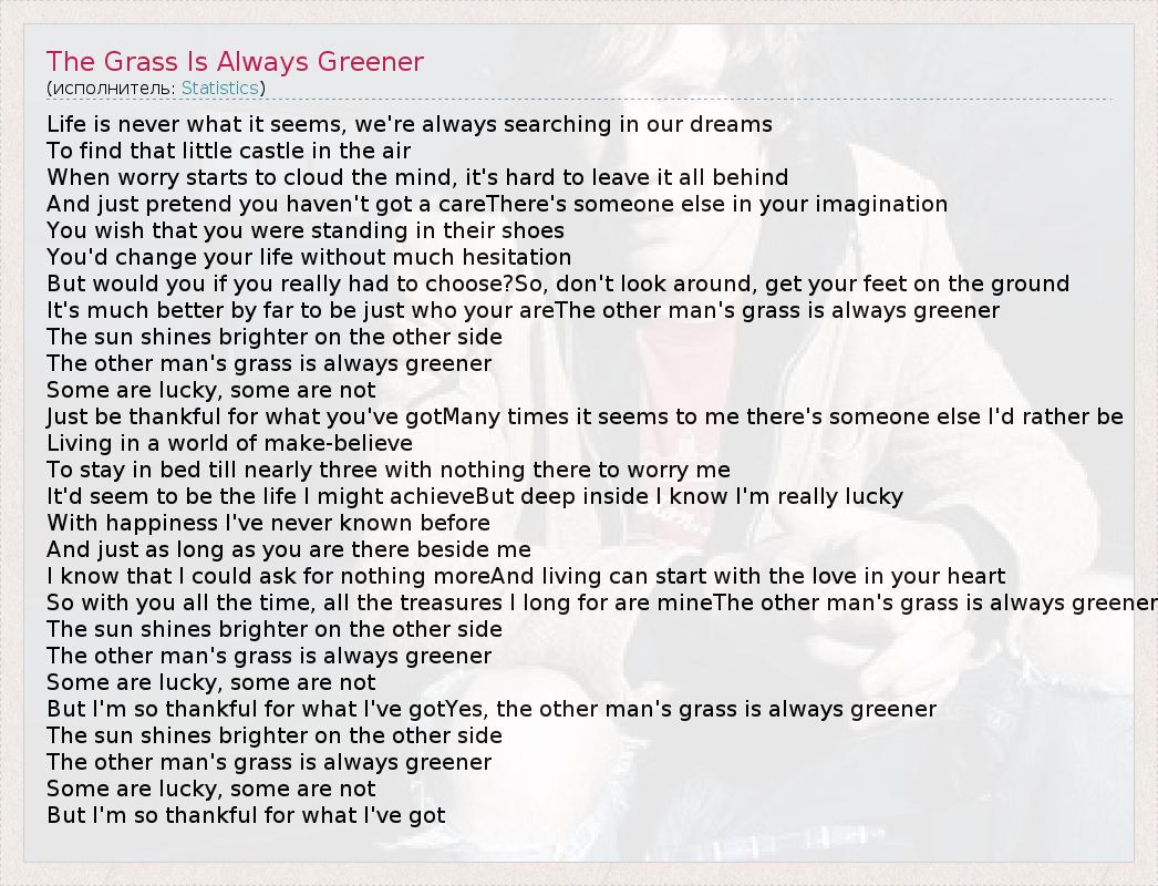 А как ты думаешь, о чем песня "The Grass Is Always Greener" ?