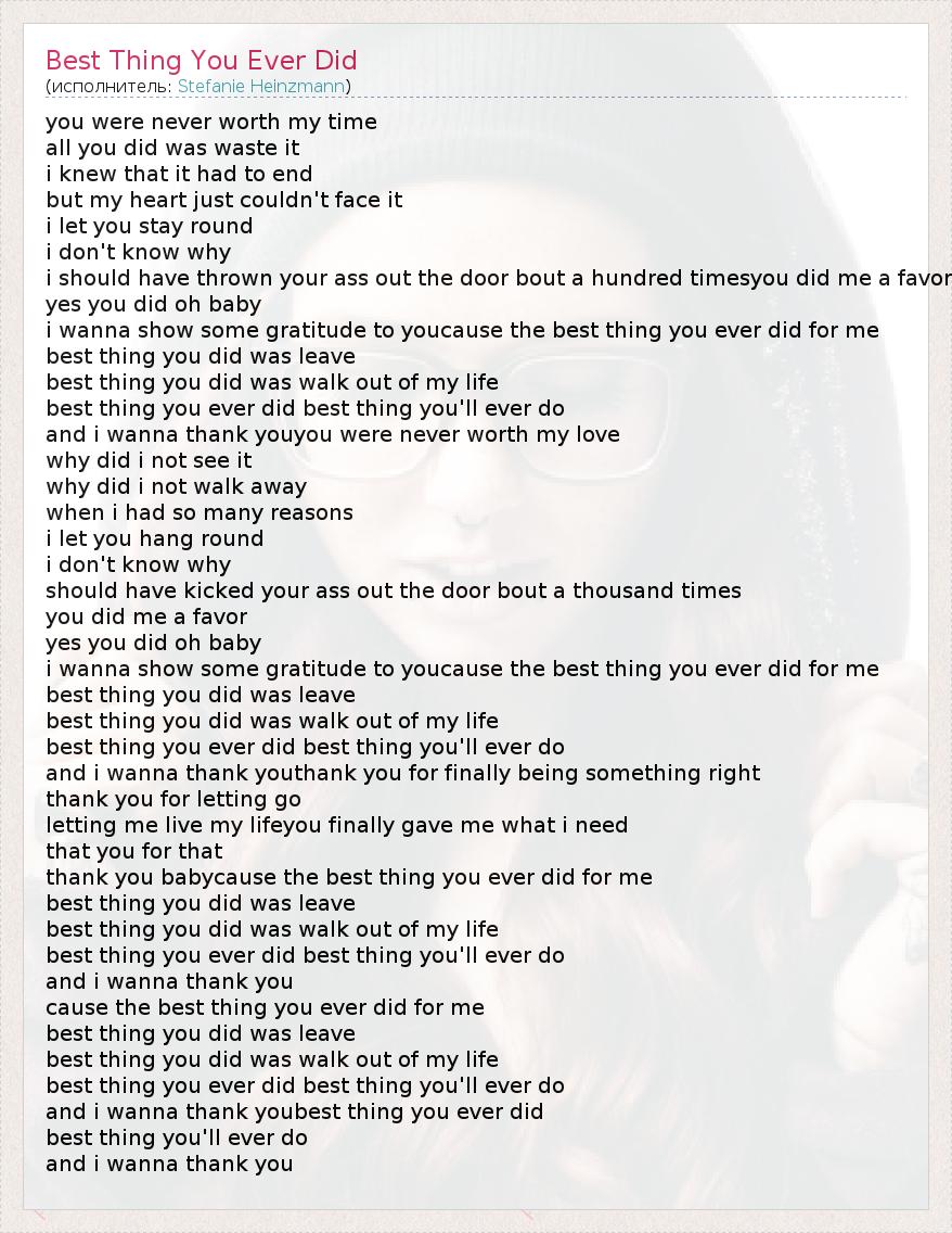 А как ты думаешь, о чем песня "Best Thing You Ever Did" ?