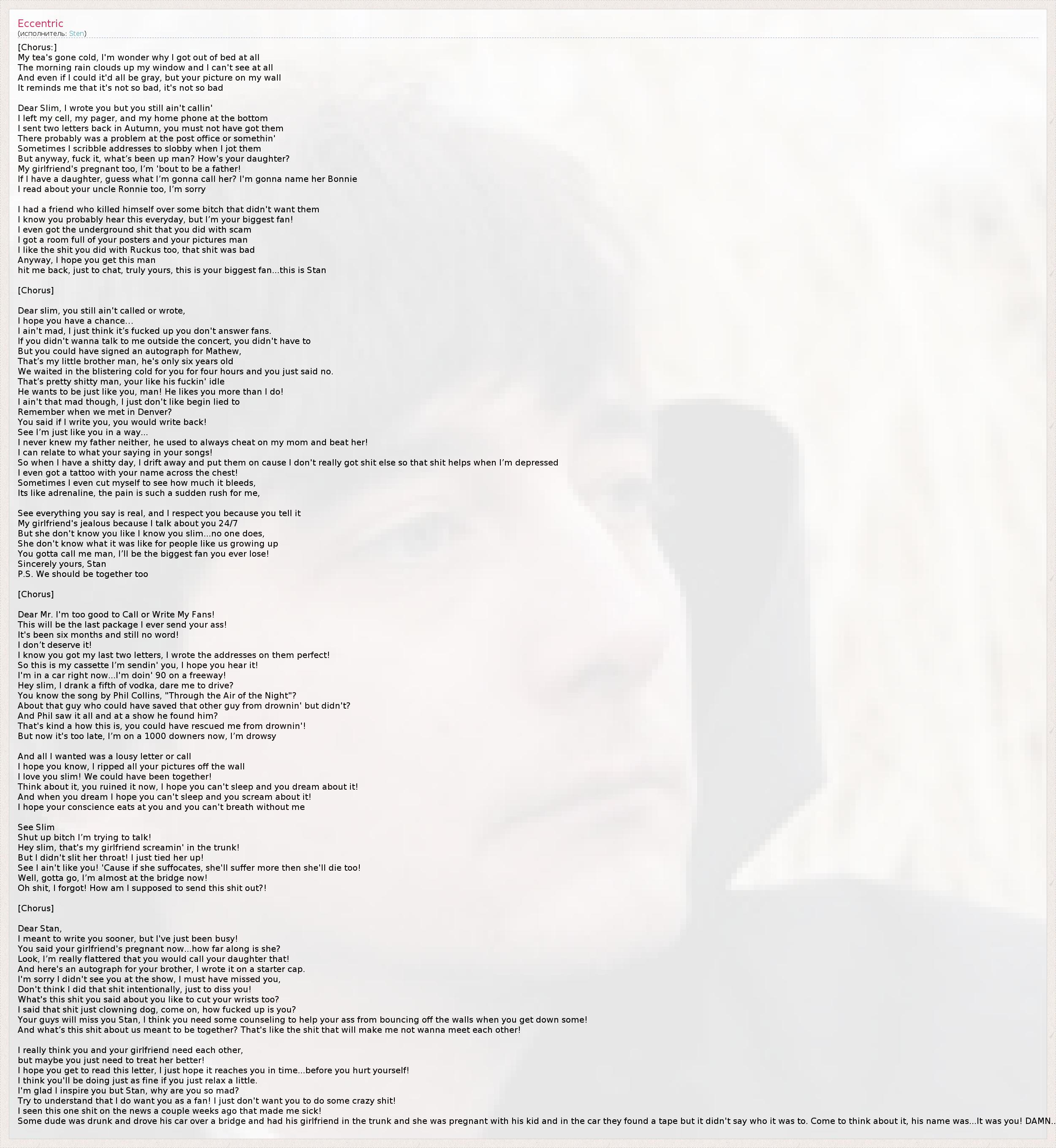 А как ты думаешь, о чем песня "Eccentric" ?