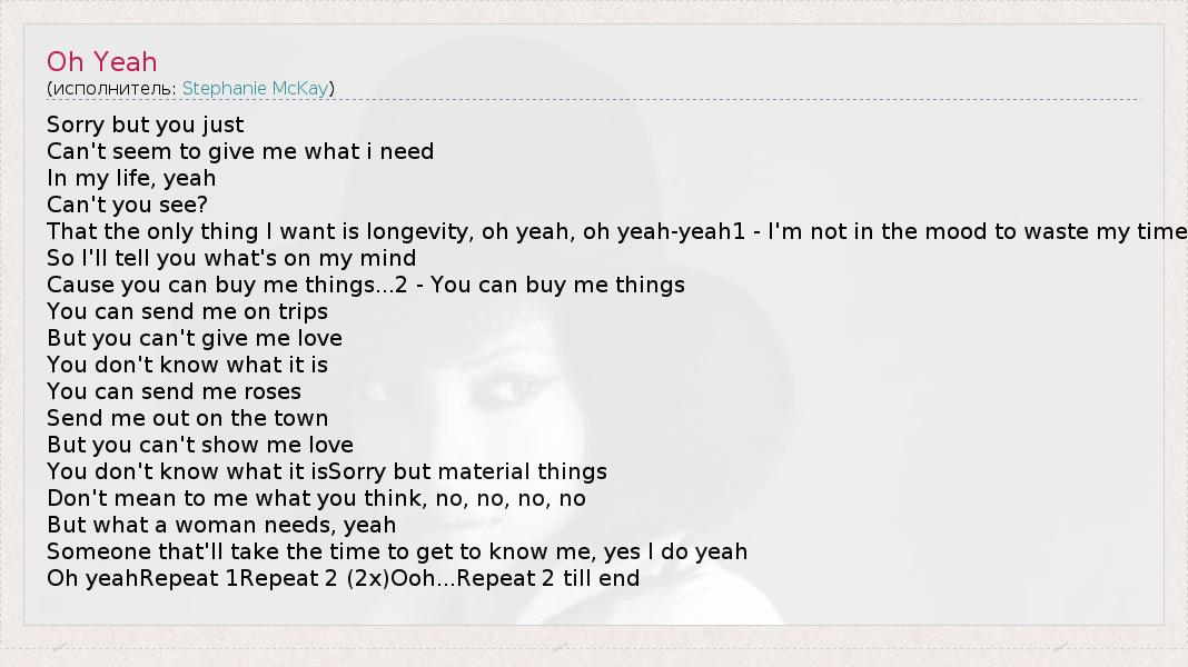 А как ты думаешь, о чем песня "Oh Yeah" ?
