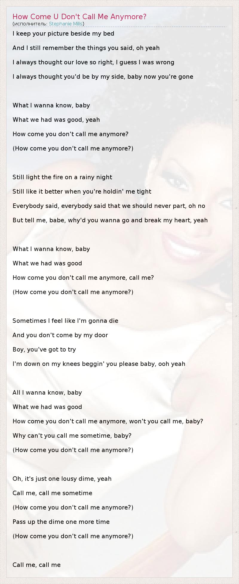 А как ты думаешь, о чем песня "How Come U Don't Call Me Anymore?" ?