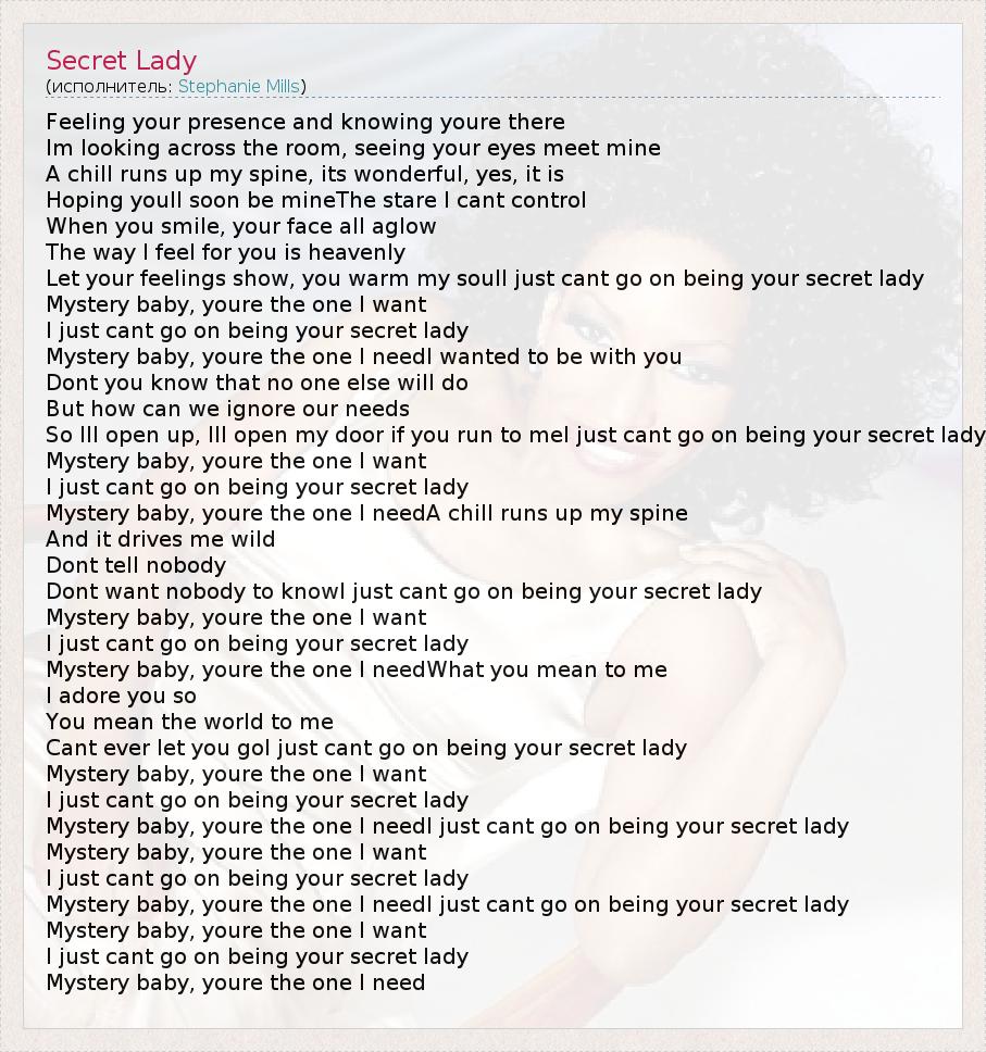 А как ты думаешь, о чем песня "Secret Lady" ?