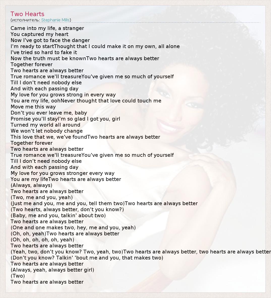 А как ты думаешь, о чем песня "Two Hearts" ?