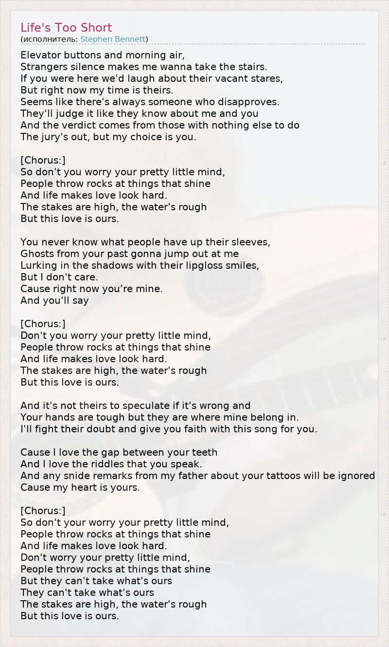 А как ты думаешь, о чем песня "Life's Too Short" ?