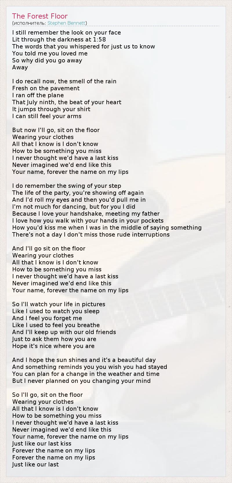 А как ты думаешь, о чем песня "The Forest Floor" ?