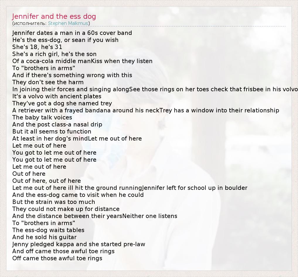 А как ты думаешь, о чем песня "Jennifer and the ess dog" ?