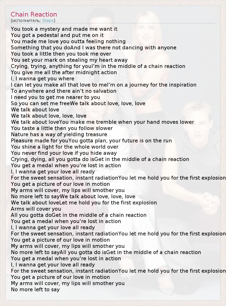 А как ты думаешь, о чем песня "Chain Reaction" ?