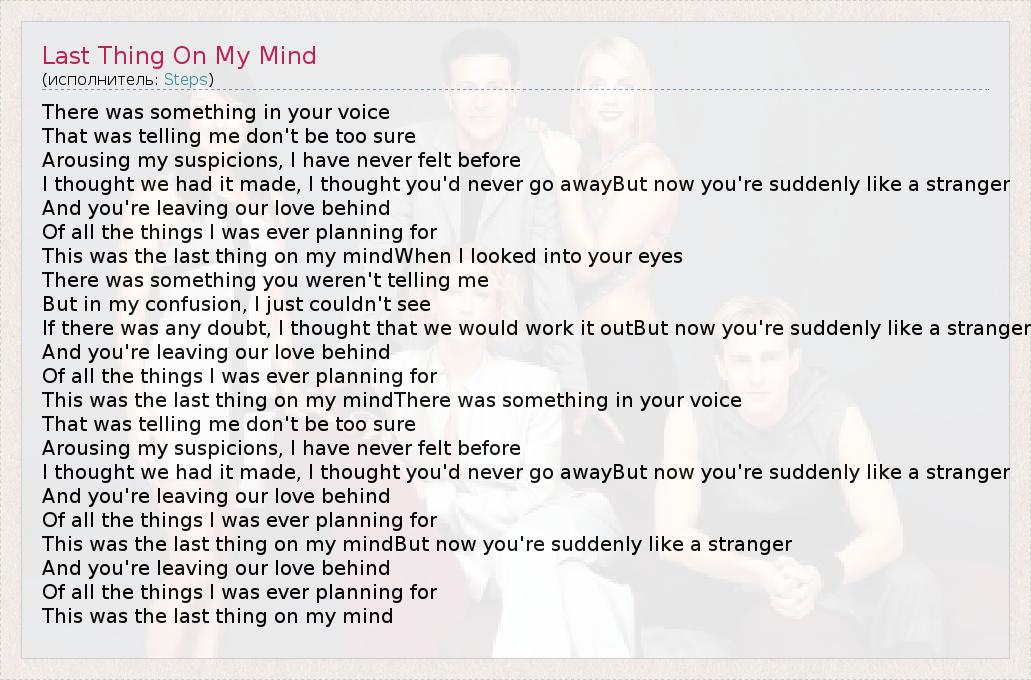 ГлавнаяИсполнителиStepsLast Thing On My Mind