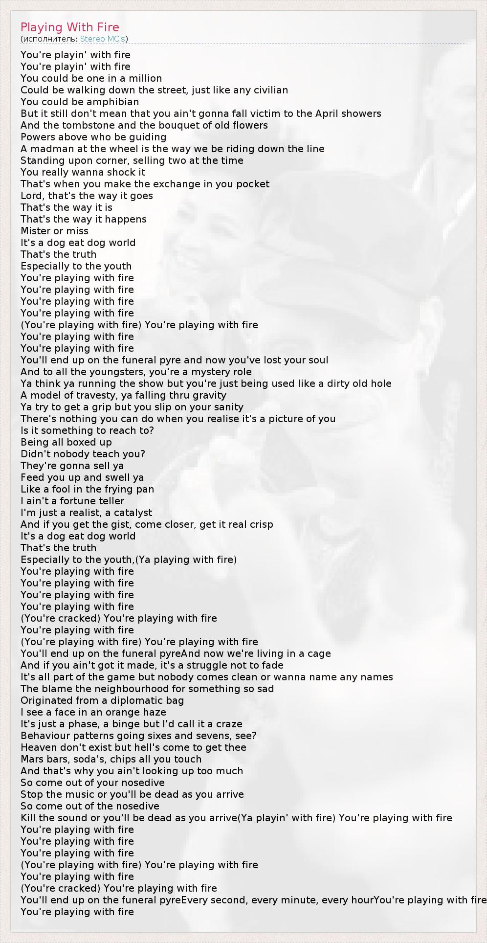 А как ты думаешь, о чем песня "Playing With Fire" ?