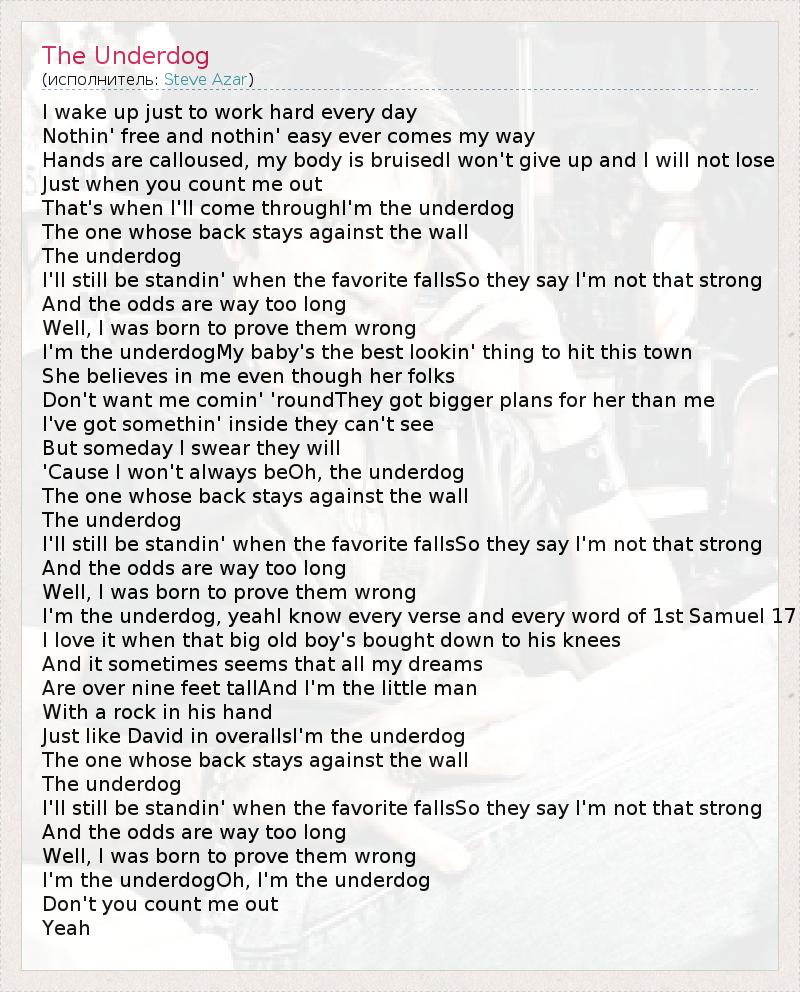 I'm the underdogMy baby's the best lookin' thing to hit this town