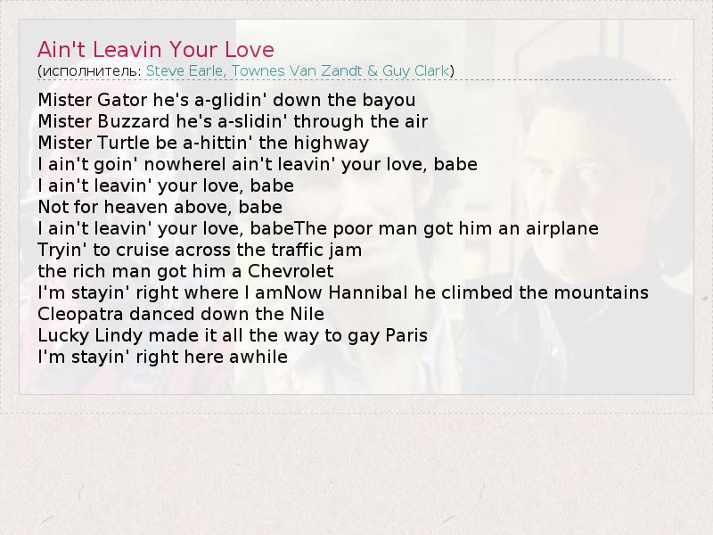 А как ты думаешь, о чем песня "Ain't Leavin Your Love" ?