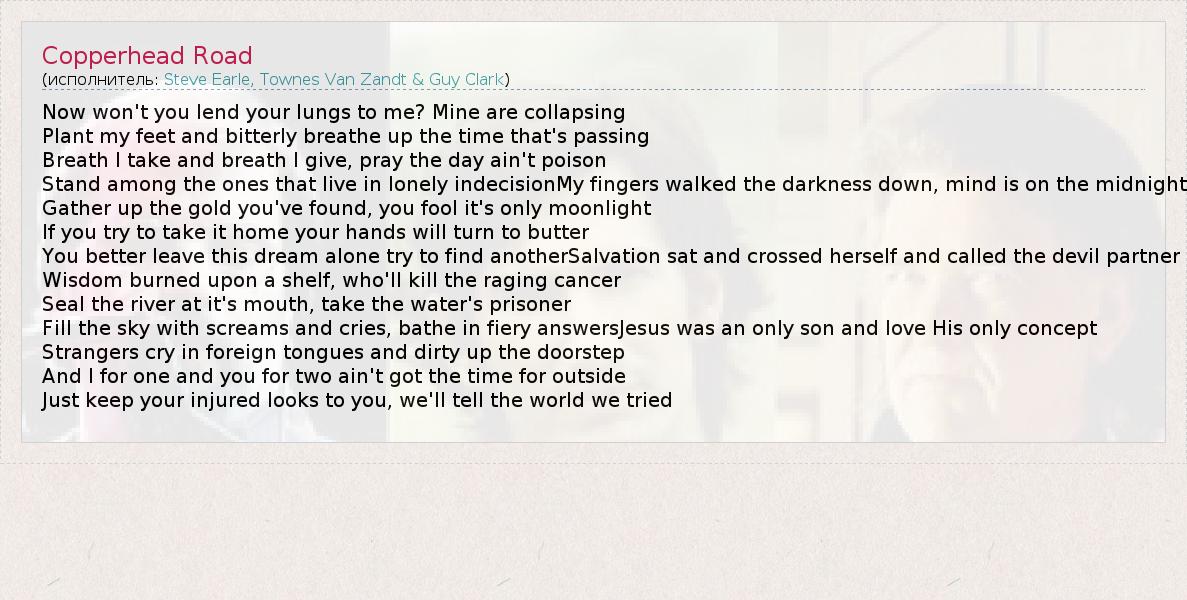 А как ты думаешь, о чем песня "Copperhead Road" ?