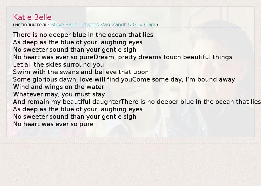 А как ты думаешь, о чем песня "Katie Belle" ?