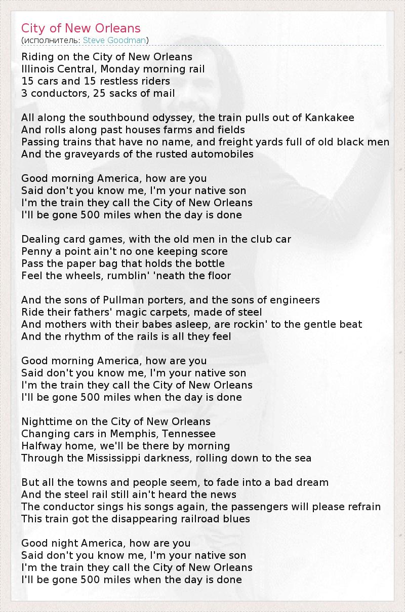 А как ты думаешь, о чем песня "City of New Orleans" ?