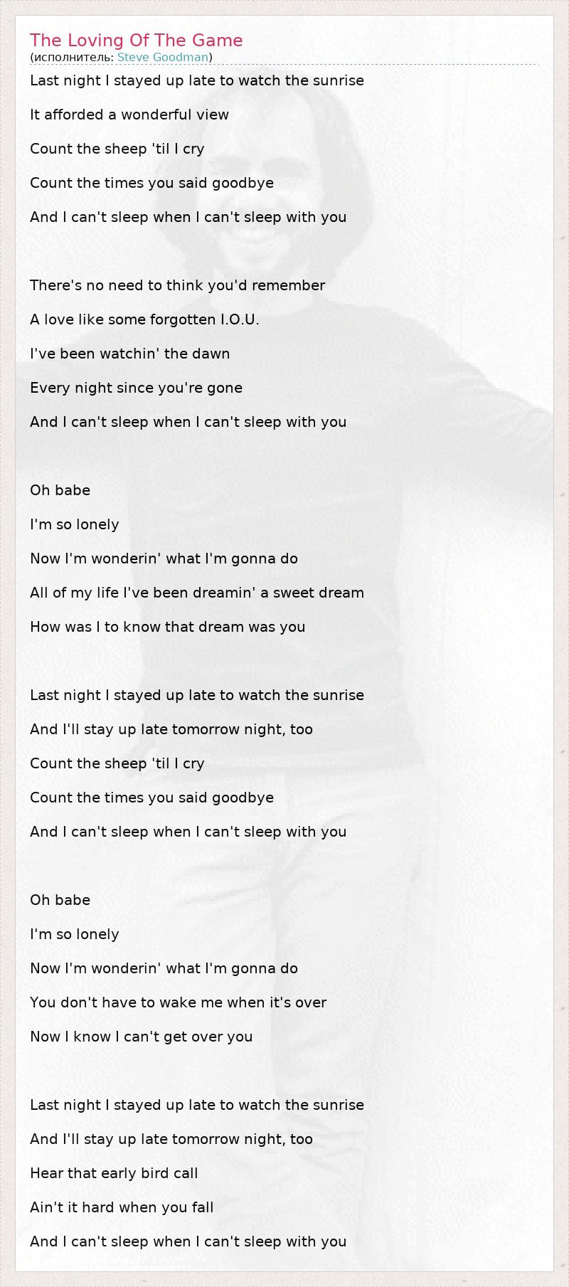 А как ты думаешь, о чем песня "The Loving Of The Game" ?