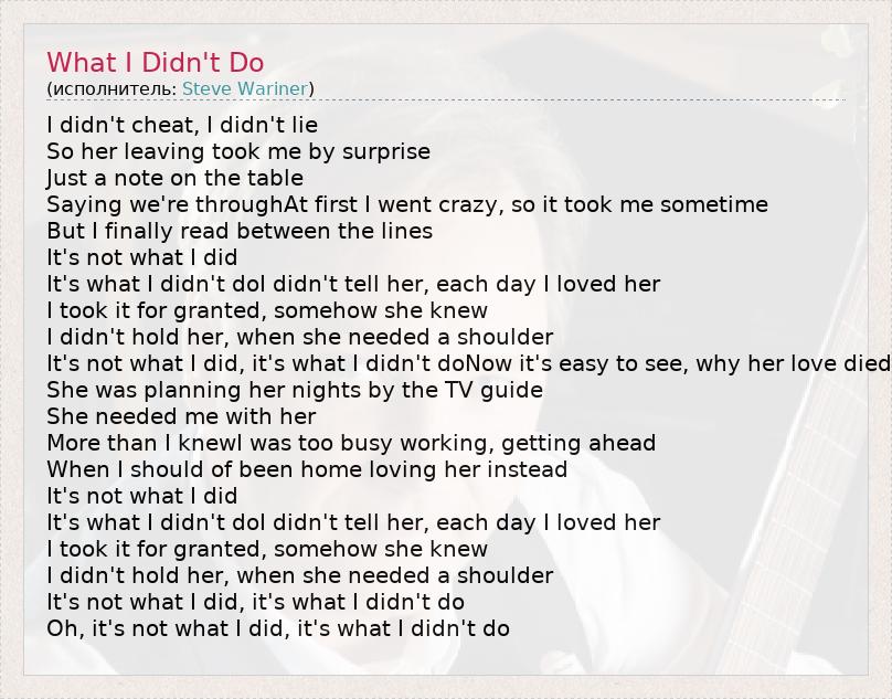 А как ты думаешь, о чем песня "What I Didn't Do" ?