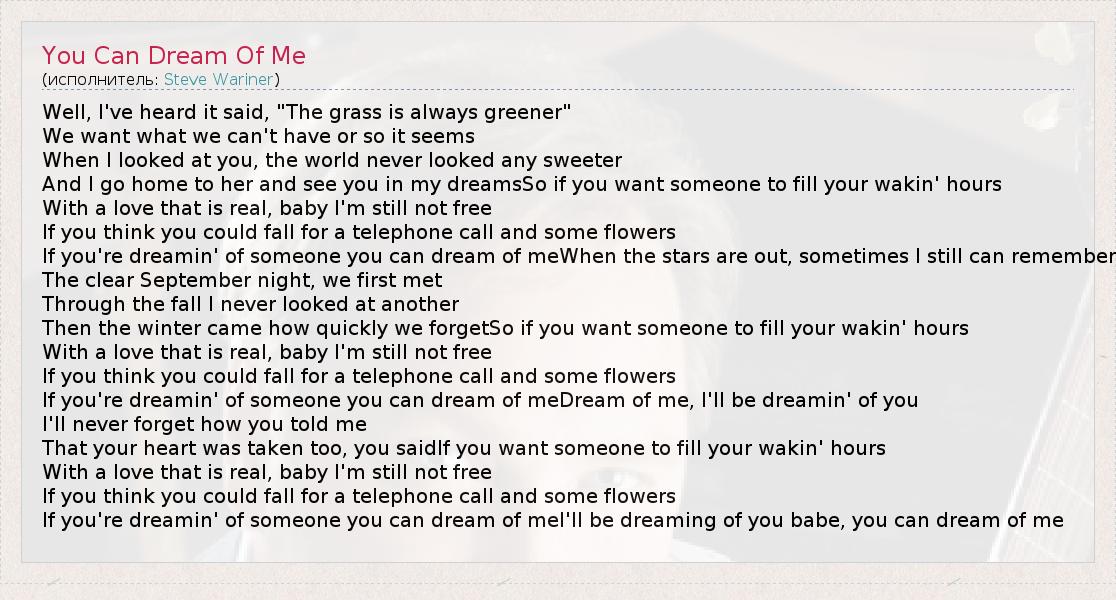 А как ты думаешь, о чем песня "You Can Dream Of Me" ?