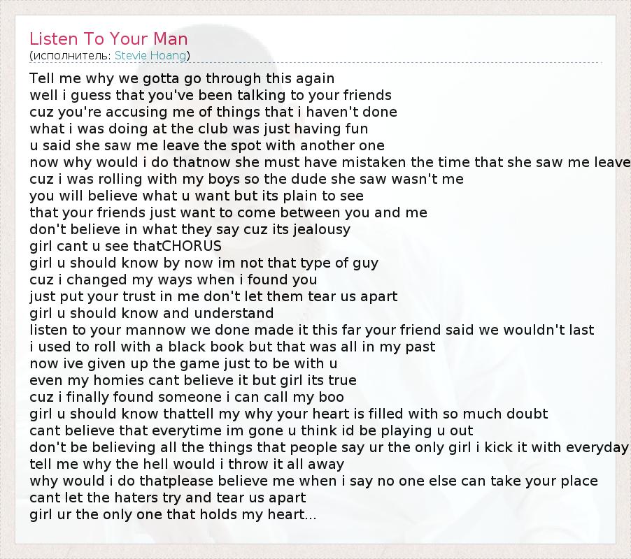 А как ты думаешь, о чем песня "Listen To Your Man" ?