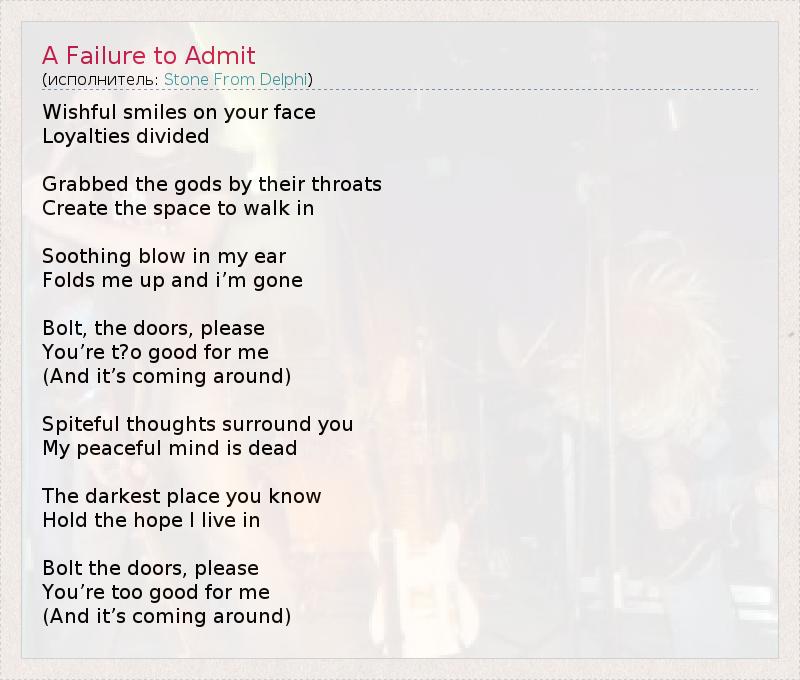А как ты думаешь, о чем песня "A Failure to Admit" ?