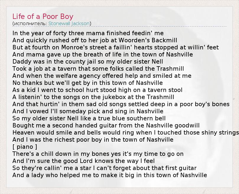 А как ты думаешь, о чем песня "Life of a Poor Boy" ?