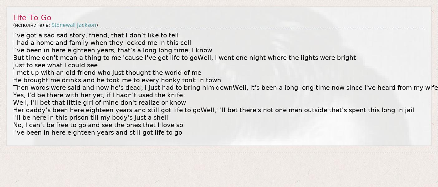 But time don't mean a thing to me 'cause I've got life to goWell, I went one night where the lights were bright