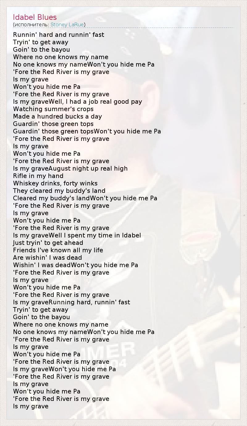 А как ты думаешь, о чем песня "Idabel Blues" ?