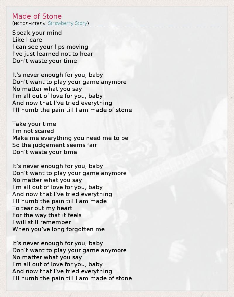 А как ты думаешь, о чем песня "Made of Stone" ?