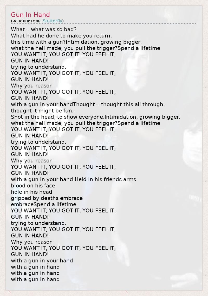 А как ты думаешь, о чем песня "Gun In Hand" ?