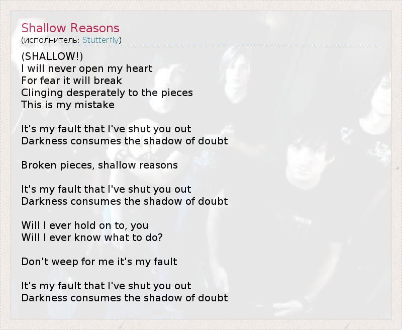 А как ты думаешь, о чем песня "Shallow Reasons" ?