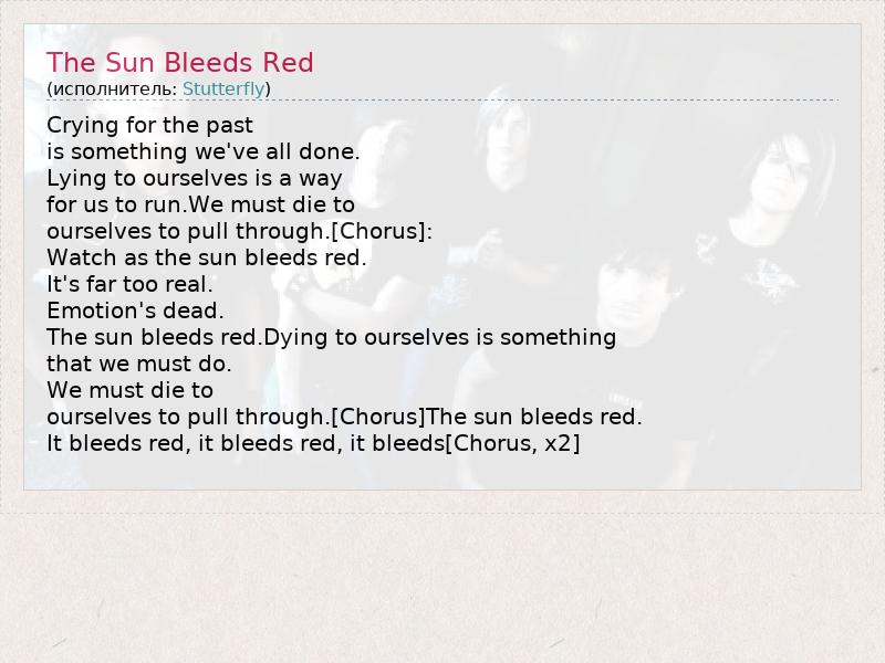 А как ты думаешь, о чем песня "The Sun Bleeds Red" ?