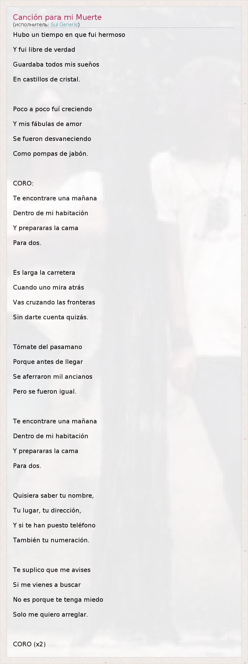 А как ты думаешь, о чем песня "Canción para mi Muerte" ?