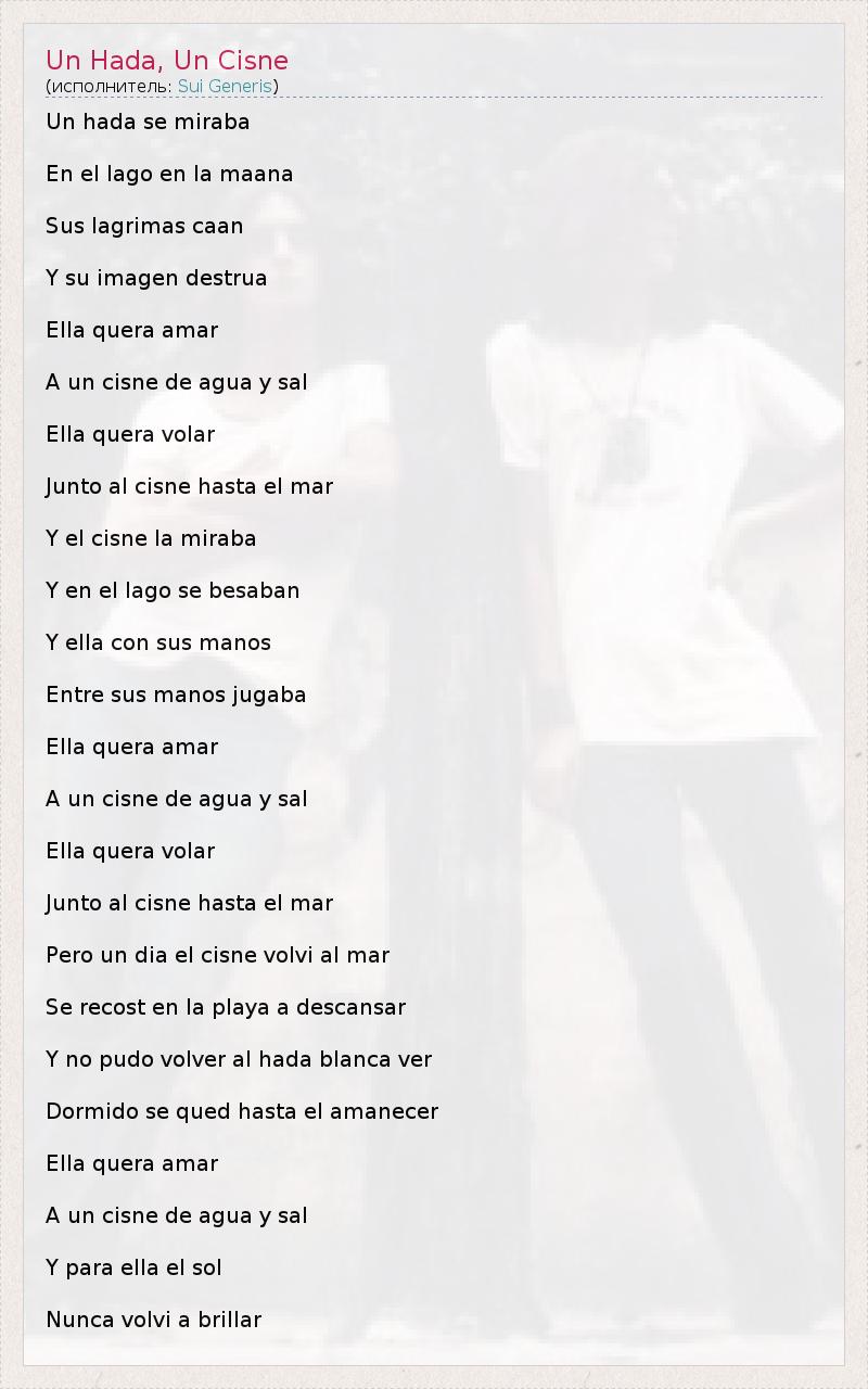 А как ты думаешь, о чем песня "Un Hada, Un Cisne" ?