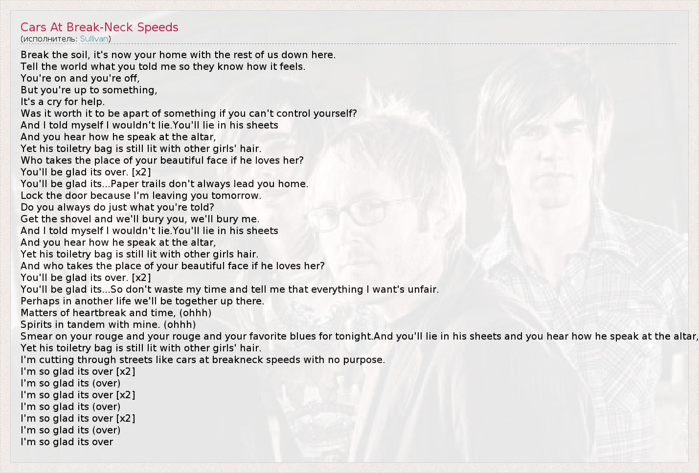 А как ты думаешь, о чем песня "Cars At Break-Neck Speeds" ?