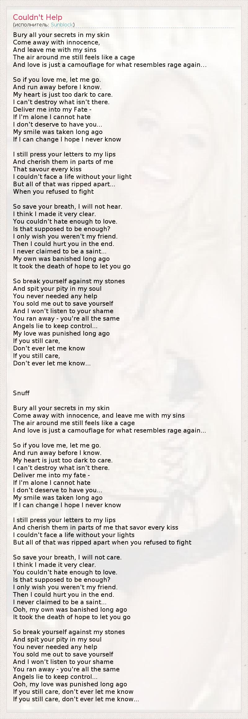 А как ты думаешь, о чем песня "Couldn't Help" ?