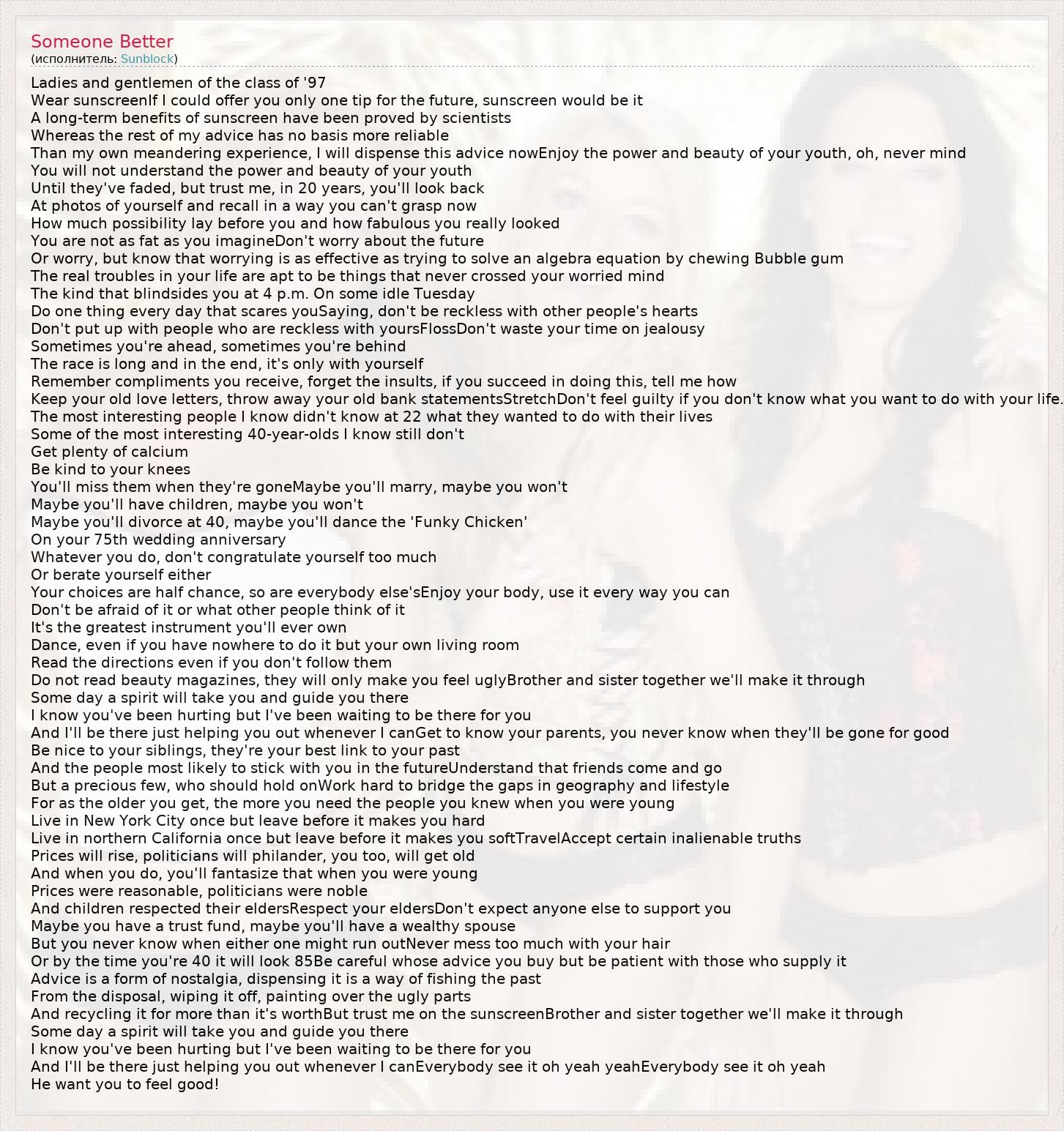 And recycling it for more than it's worthBut trust me on the sunscreenBrother and sister together we'll make it through