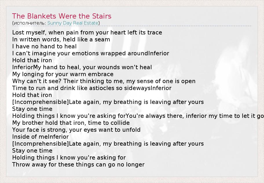 А как ты думаешь, о чем песня "The Blankets Were the Stairs" ?