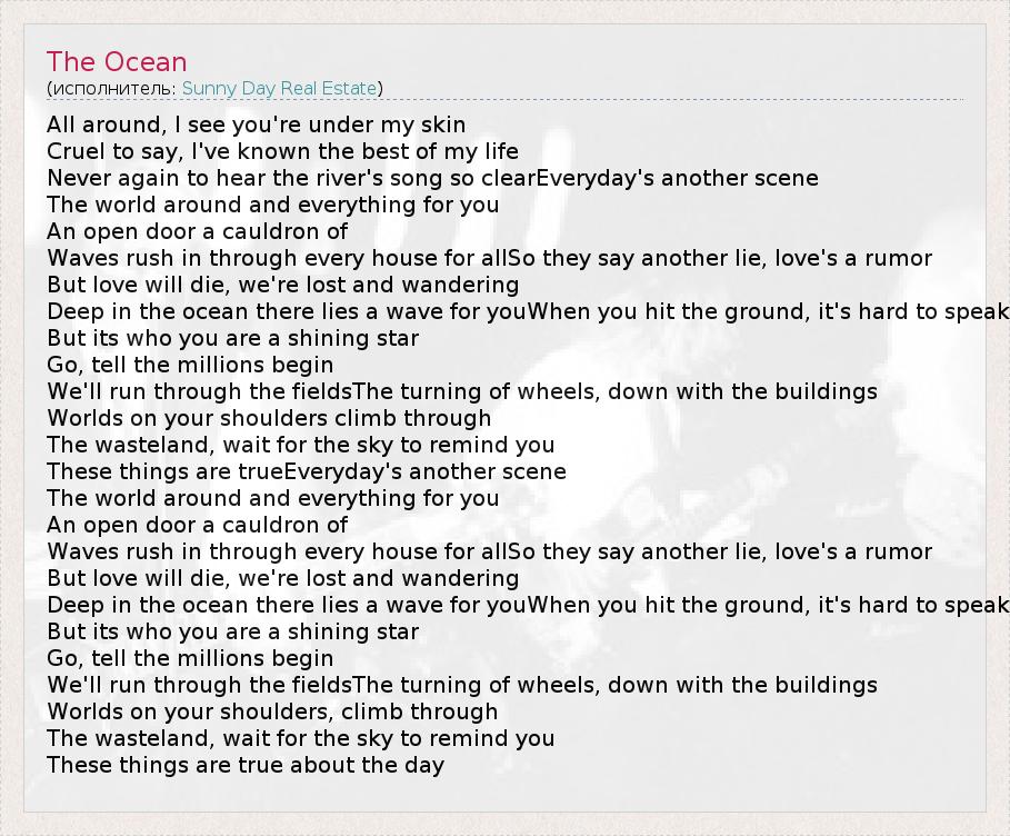 А как ты думаешь, о чем песня "The Ocean" ?