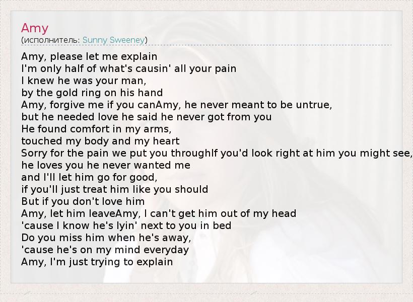 Amy, forgive me if you canAmy, he never meant to be untrue,