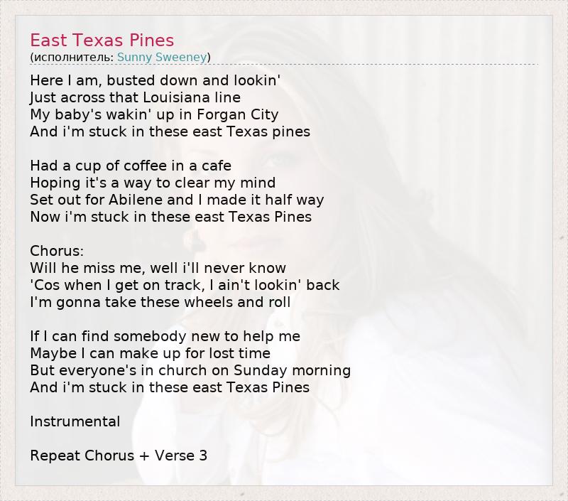 А как ты думаешь, о чем песня "East Texas Pines" ?